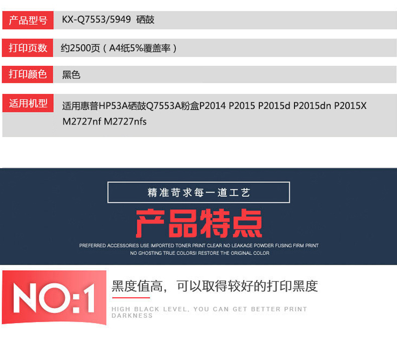 凱欣標準版 KX-Q7553/5949粉盒 適用惠普HP53A硒鼓Q7553A粉盒P2014 P2015 P2015d P2015dn 全國統(tǒng)一價:146元