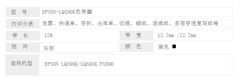 凱欣 KX-LQ590K 適用愛普生EPSON FX890 LQ590K LQ590KII LQ595K S015337 C13S015590打印機(jī)色帶架含芯 全國統(tǒng)一價:33元