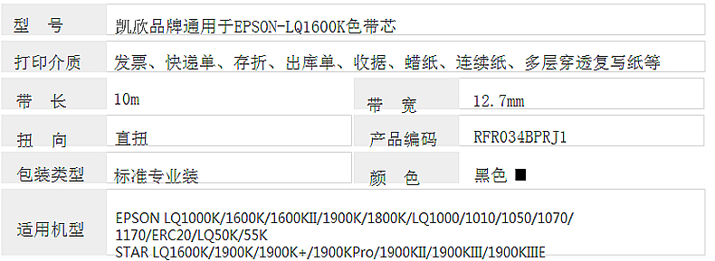 凱欣 KX-LQ1600KIIIH 適用愛普生EPSON LQ1600K3H 2680k 2090 FX2190 全國統(tǒng)一價(jià):72元/6個(gè)