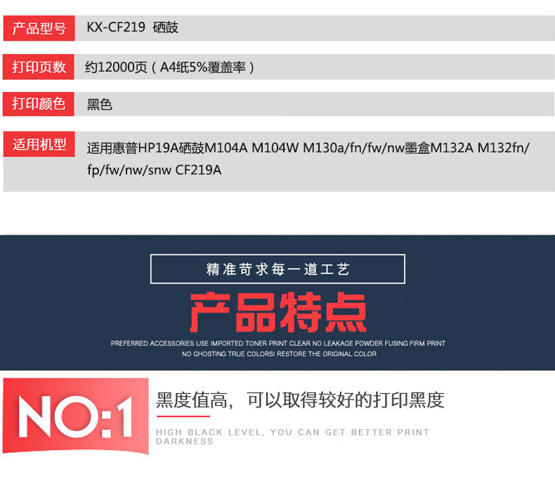 凱欣標準版 KX-CF219硒鼓 適用惠普HP19A硒鼓M104A M104W M130a/fn/fw/nw墨盒M132A 全國統(tǒng)一價:166元